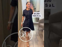 Este vestido mini de mezclilla combina lo clásico del denim con un toque femenino. Presenta cuello redondo, mangas cortas y cierre frontal con botones metálicos. Su tejido con un ligero toque elástico se adapta al cuerpo, ideal para looks casuales y modernos.